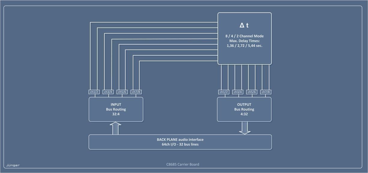 The C8685 delay module is designed to apply audio delay in the C8000 modular processing solution in a wide variety of channel configurations.